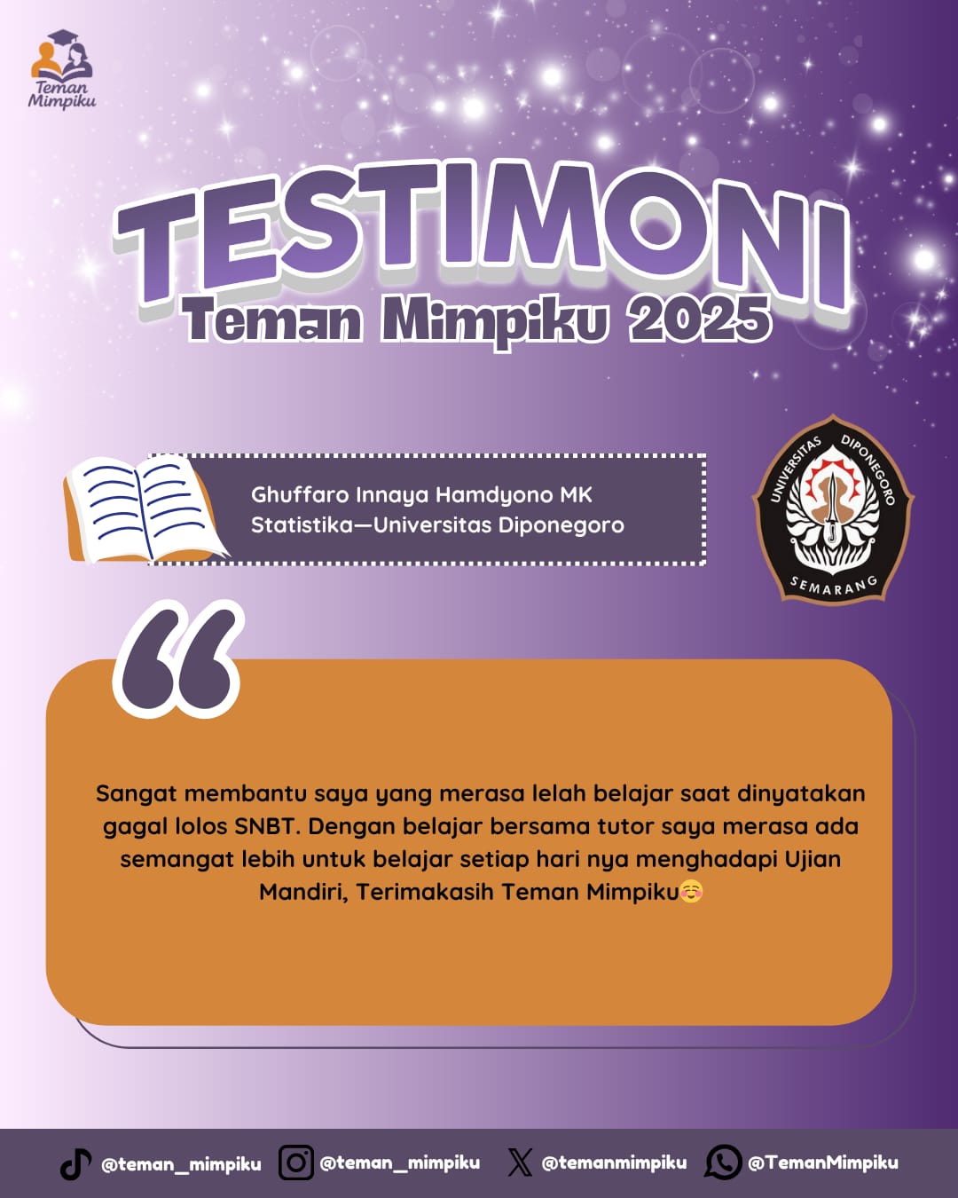 Kami paham banget rasanya overwhelmed sama materi UTBK yang segunung. Makanya, Teman Mimpiku hadir buat bikin proses belajar lo jadi lebih terstruktur, santai, tapi tetep on fire 🔥.